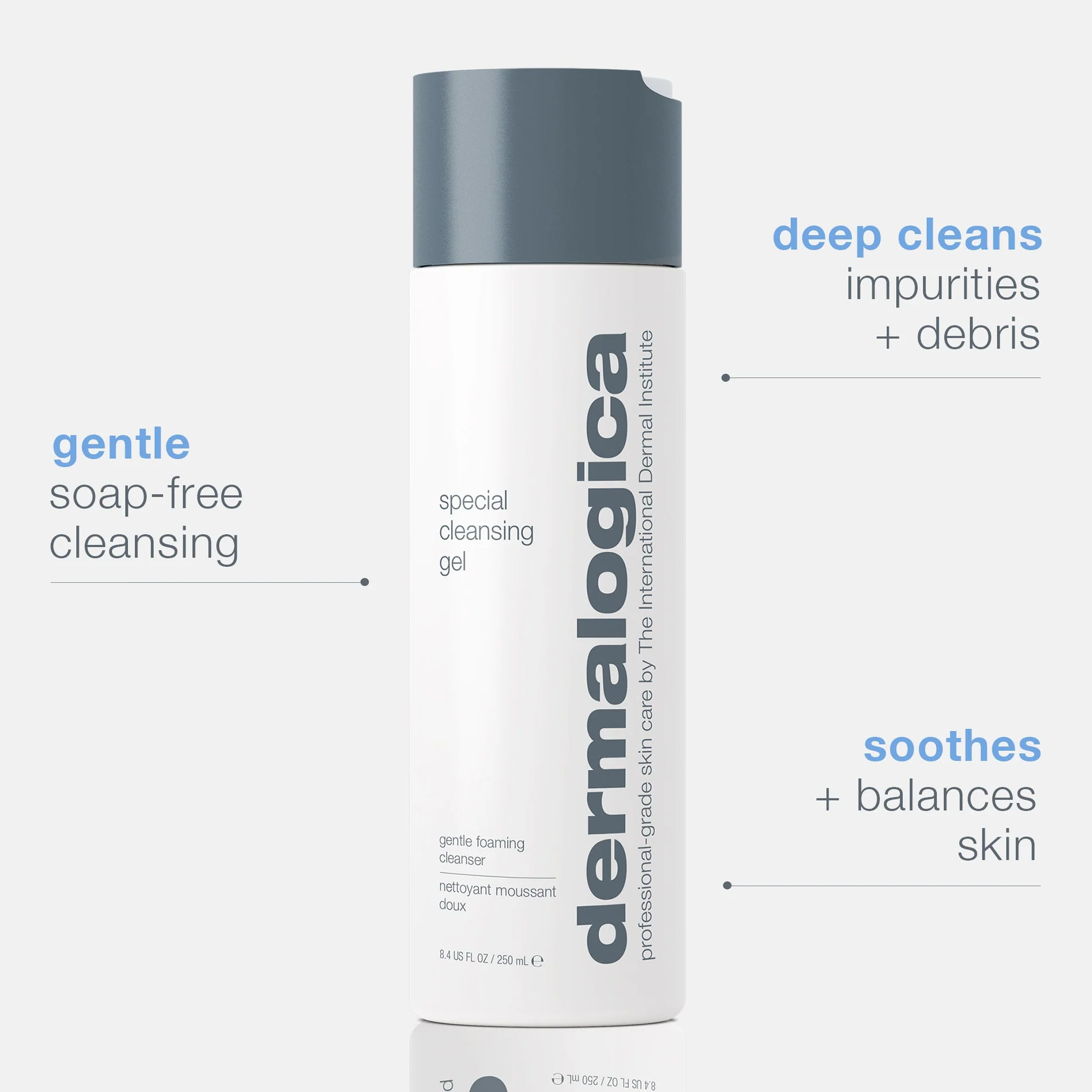 Soap-free, foaming gel cleanses all skin conditions. Refreshing lather thoroughly removes impurities, without disturbing the skin’s natural moisture balance. This iconic cleanser, which contains naturally-foaming Quillaja Saponaria, gently rinses away toxins and debris to leave skin feeling smooth and clean. Lightweight and mild enough to use every day, it also features calming Balm Mint and Lavender extracts to soothe the skin. Citric Acid, an Alpha Hydroxy Acid (AHA), helps to even skin tone and clean pores.